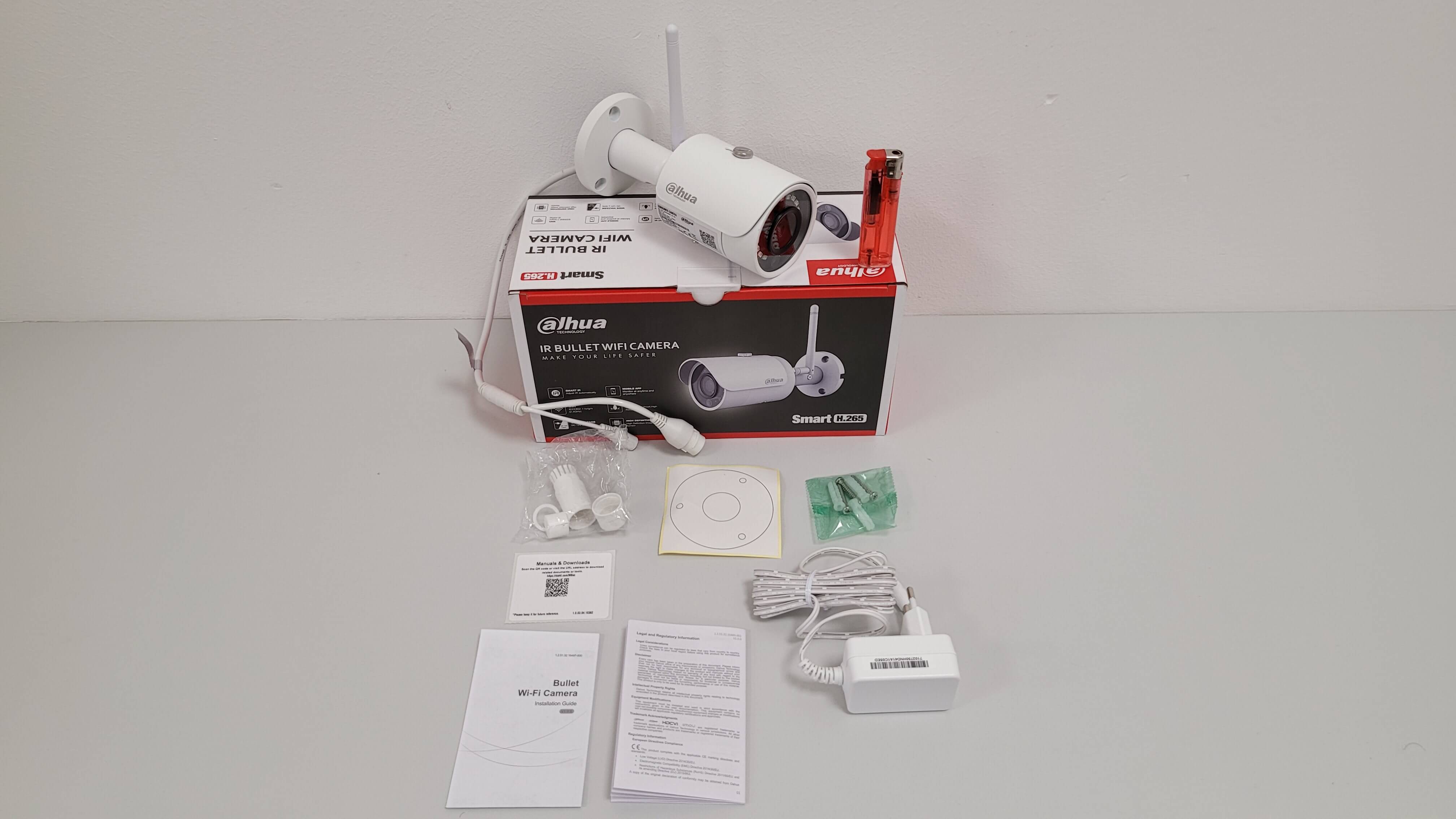 - Dahua DH-IPC-HFW1435S-W-0280B-S2 WLAN Bullet Kamera -4 Megapixel Auflösung und IP67 Zertifizierung für den Außenbereich.