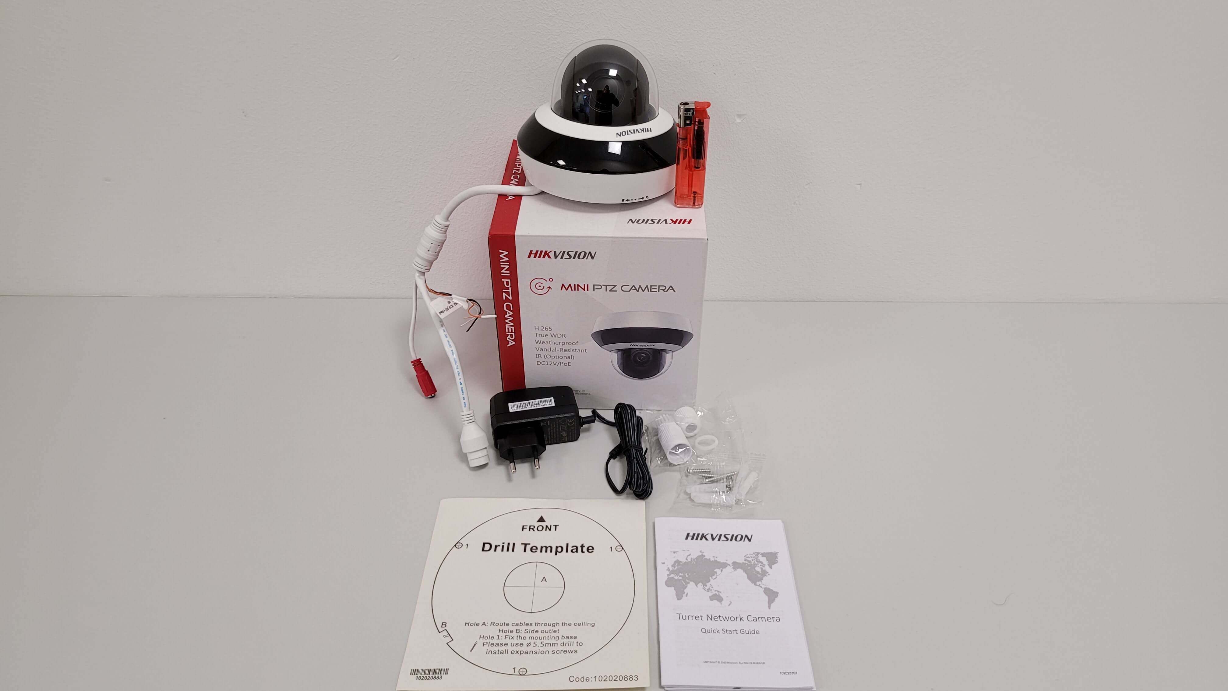 Bei der DS-2DE2A404IW-DE3/W(2.8-12mm) von Hikvision handelt es sich um eine kleine WLAN Dome Kamera mit PTZ (Pan/Tillt/Zoom) die schwenkbar, neigbar und zoombar ist.