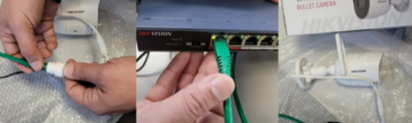 - Schließen Sie die Kamera an einen PoE Injector oder an einen Switch an. So kann die Kamera mit Strom versorgt werden, und es wird gleichzeitig eine Datenverbindung hergestellt.