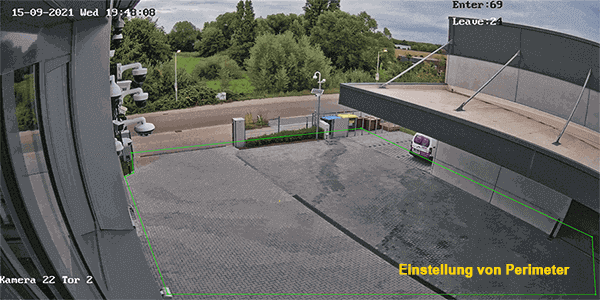 Durch den meist zu großen Blickwinkel aber auch hohe Auflösung der IP-Kameras, entstehen oft überdimensionierte Überwachungsbilder, die nur selten für eine Videoüberwachung relevant sind. Die Absicht nur mit einer Überwachungskamera ein riesiges Areal abzudecken und damit ein allgemeines Lagebild zu erzeugen ist insofern korrekt, allerdings für eine zuverlässige Videoüberwachung nicht effektiv. Das Überwachungsbild der IP-Kamera liefert durch den großen Bildausschnitt unnötige Informationen wie, Himmel oder weitentfernte Ecken, die für die Videoüberwachung nicht nur unwichtig sind, sondern auch die Genauigkeit der Überwachung in der Funktionalität einschränkt. Somit kann die IP-Kamera keine zuverlässige Alarmierung gewährleisten wodurch das gesamte Sicherheitskonzept geschwächt wird. Diese Problematik ändert sich, sobald genaue Perimeter, wo die IP-Kamera alarmieren soll, in der Einstellung definiert werden. Die Überwachungskamera liefert weiter ein großes Lagebild, kann aber gezielt bei Verletzung vordefinierter Bereiche zuverlässig alarmieren.
