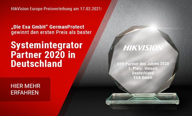 Heute, am 17.02.2021 haben wir, die ESA GmbH GermanProtect den ersten Preis als bester Systemintegrator Partner 2020 in Deutschland von Hikvision Europe verliehen bekommen. Für den Award wurden folgende Kriterien unteranderem beurteilt: Know How der ESA GmbH, Beratung, Aftersale Support für Kunden, Zuverlässigkeit, Mitarbeiterschulungen, Umgang mit der Marke Hikvision, Ausstellung für die Marke Hikvision etc. Wir sind auf unsere geleistete Arbeit, sei es was den Kundensupport, Beratung oder Know-How betrifft sehr stolz. Stolz vor allem, dass ein solch renomierter Hersteller wie Hikvision, unsere Professionalität als Errichter, Planer und Lösungsanbieter für Gross-Projektmanagement im Bereich Überwachungs- und Sicherheitstechnik mit dem Award als bester Hikvision Partner in Deutschland heute würdigt. An dieser Stelle möchte ich mich als Geschäftsführer gerne bei all unseren Technikern, Systemingineuren und Projektmanagern herzlich für die grandiose Arbeit bedanken! Ohne das gesamte Team der ESA GmbH GermanProtect, wäre dieser Erfolg nicht realisierbar gewesen. Ebenso danken wir der Hikvision Deutschland GmbH für die Unterstützung die einen nicht unerheblichen Teil des Uhrwerks darstellt. Nicht zuletzt möchte ich mich auch bei all unseren Kunden bedanken, die ebenso unsere Professionalität schätzen und uns seit Jahren die Treue halten.