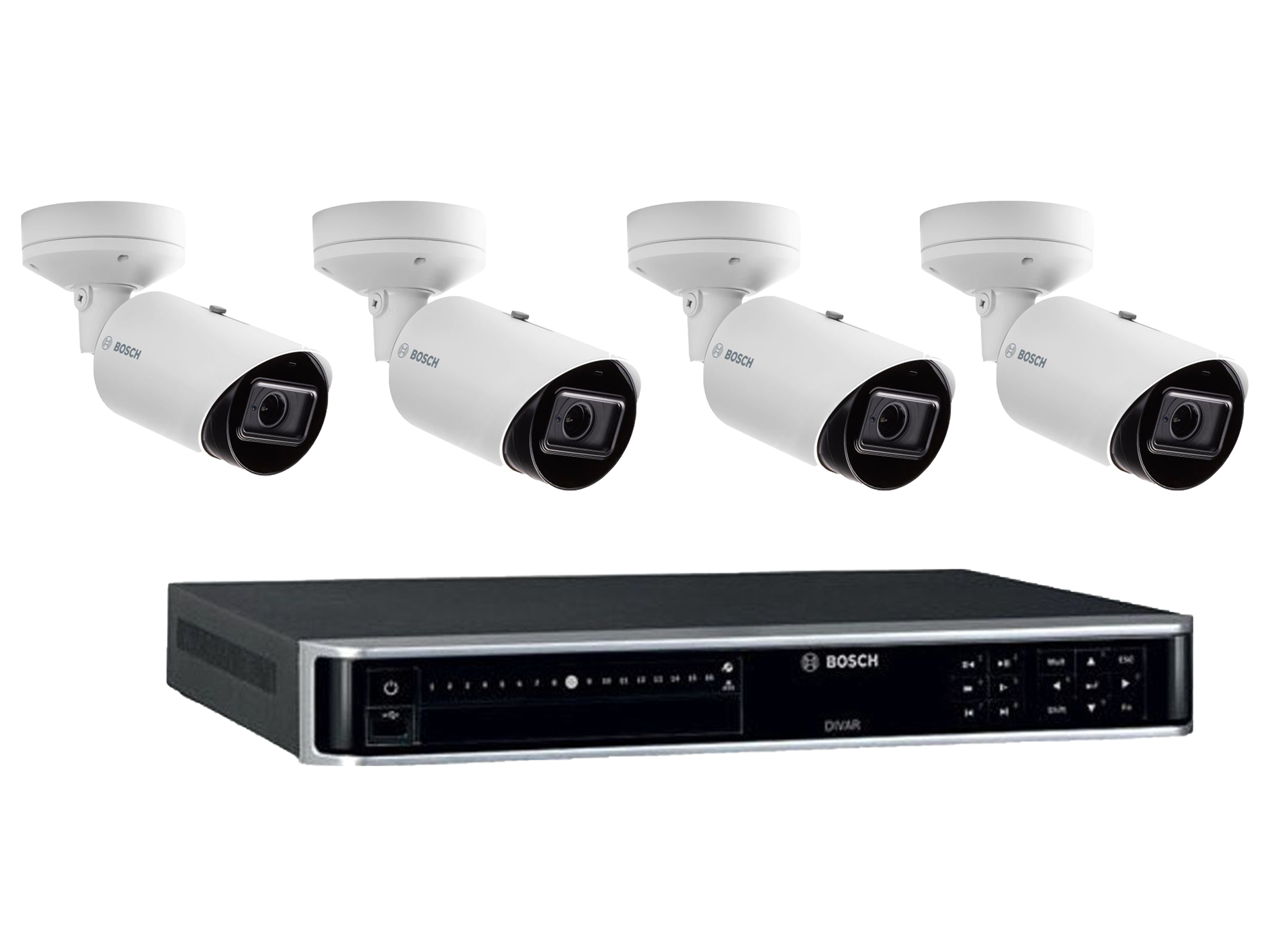 Um eine effiziente Videoüberwachung im Außenbereich zu realisieren, empfehlen wir die Auswahl von Bulletkameras im Zusammenhang mit einem Netzwerkvideorekorder. Die Bulletkameras sind für eine Videoüberwachung am Haus durch ihre voluminöse Bauart sehr präsent und für den Täter auf jeden Fall wahrnehmbar. Hinzu kommt, dass die Bullet Kameras am besten unter allen Überwachungskameras durch ihre hohe Infrarotreichweite verwertbare Bilder in der Nacht liefern.